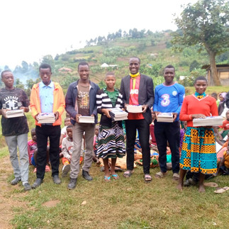 Then we gave the primary pupils scholastic materials. They are from Rushabarara P.S., Rutooma P.S., Igabiro P.S., Good Hope P.S., Kalehe P.S., Kirundo P.S., Kisharu P.S., Rutaka P.S.,